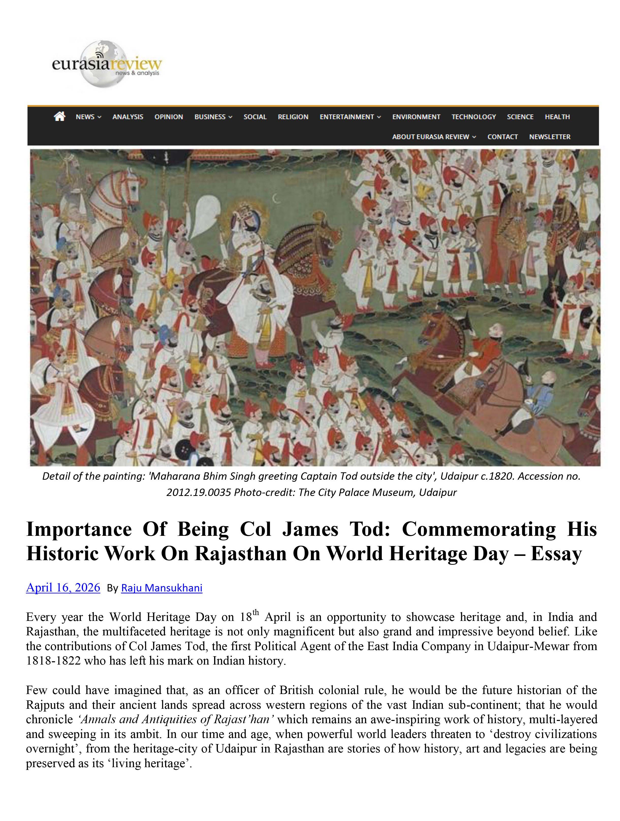 Importance Of Being Col James Tod: Commemorating His Historic Work On Rajasthan On World Heritage Day