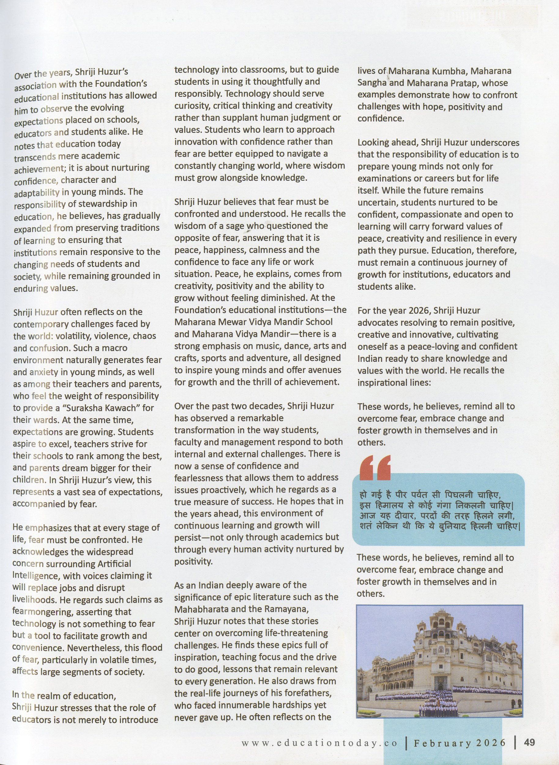 Guiding Light for Young Minds: Shriji Huzur Dr. Lakshyaraj Singh Mewar on Education and Growth